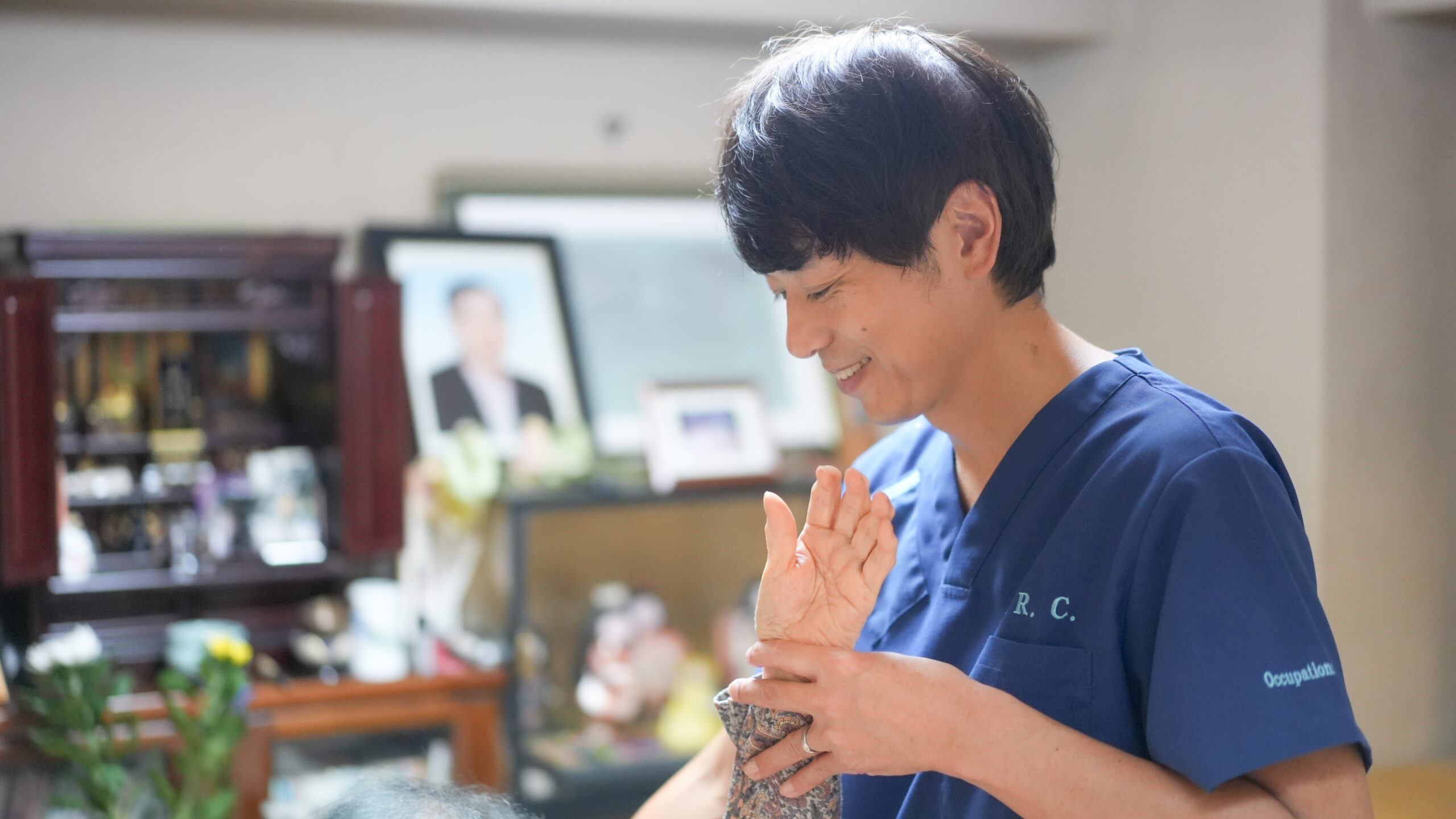 その上で、その方に適したリハビリの内容を考え、マンツーマンでリハビリを行います。その他には、「料理を作るために、包丁の操作ができるようになりたい」「洗濯物を干せるようになりたい」「着替えがしたい」など、どんな動作に対しても、その活動がもう一度行えるようになるために、誠心誠意リハビリを行なわせていただきますので、あきらめる前にぜひ一度ご相談ください。